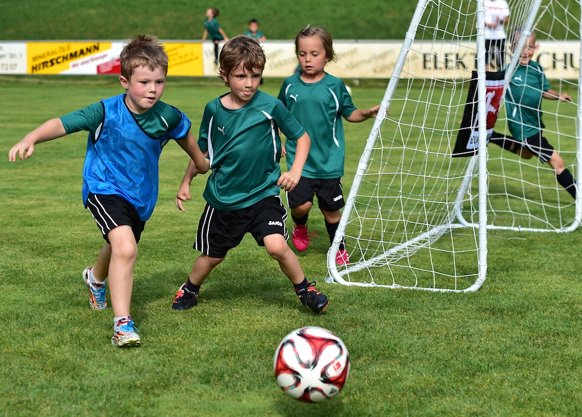 Zum Hintergrund: Bei FUNiño spielen die Kinder auf kleineren Feldern drei gegen drei, ein vierter Spieler rotiert systematisch in und aus dem Spiel. Einen Torhüter gibt es nicht, dafür aber immer vier Tore. Zwei zum Angriff und zwei zur Verteidigung. Eines der beiden zu verteidigenden Tore ist immer weniger besetzt als das andere; dieses Tor wird der im Ballbesitz befindliche Spieler gemeinsam mit seinen Mitspielern angreifen – und lernt auf diese Weise, eine Überzahl im Angriff zu schaffen.