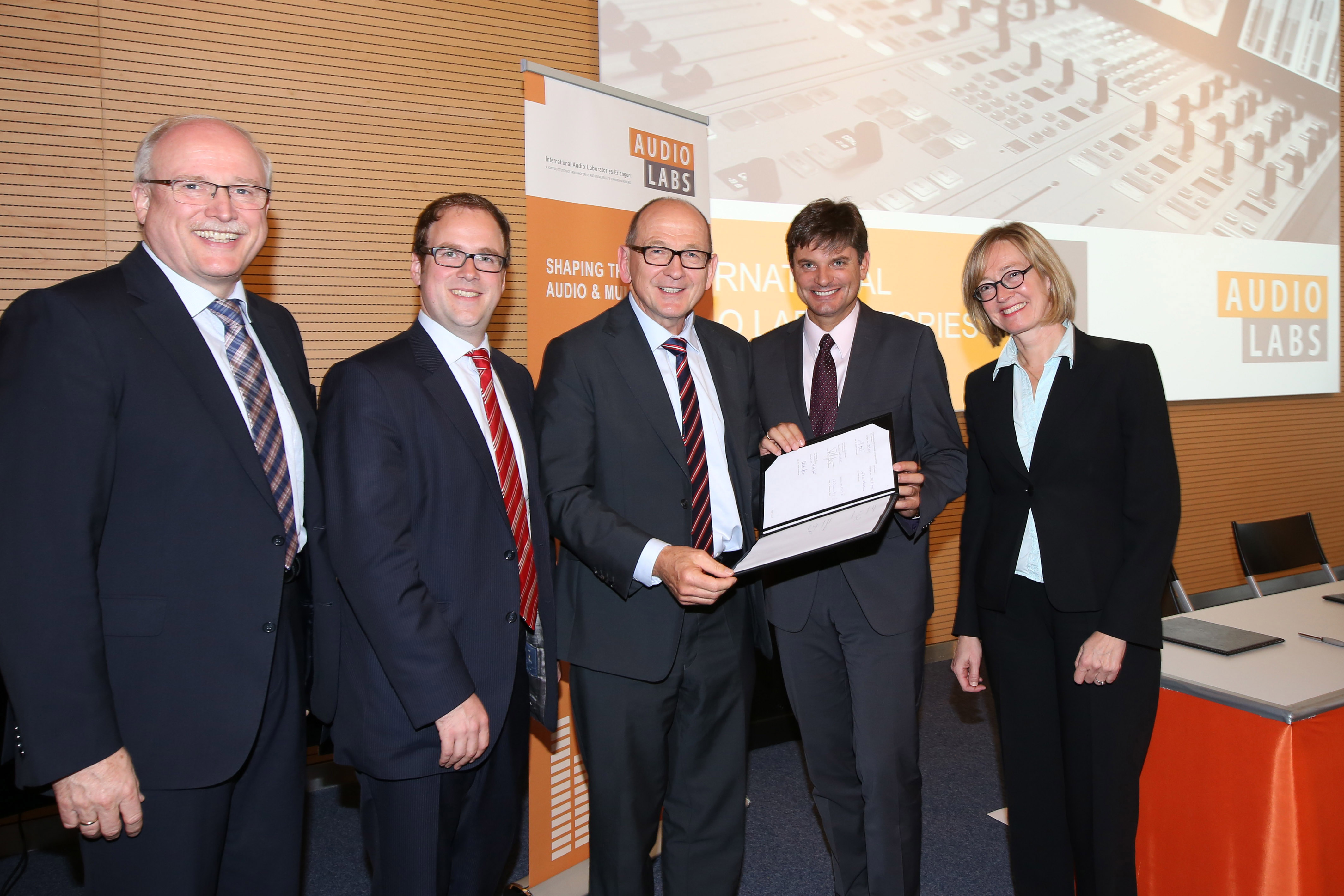 Die Fraunhofer-Gesellschaft und die FAU unterzeichneten den Vertrag zur Fortsetzung der Forschungsarbeit der AudioLabs um weitere fünf Jahre und sichern damit die Grundlage für die Entwicklung neuer Ideen und Technologien zur digitalen Verarbeitung von Multimediainhalten bis ins Jahr 2025.