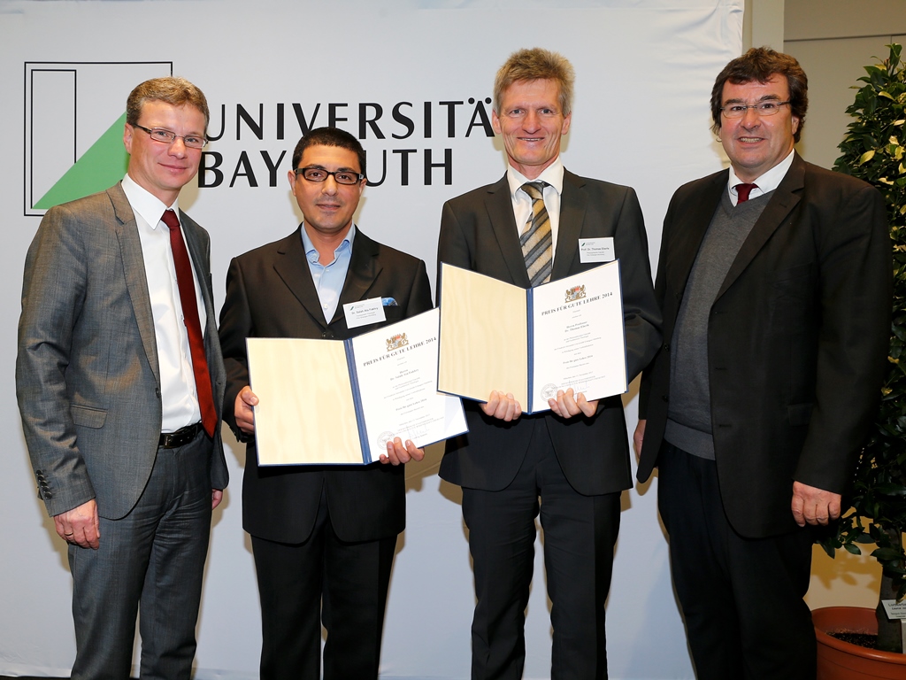 So geht gute Lehre: Prof. Dr. Thomas Eberle und Dr. Salah Ata Fakhry sind jeweils mit einem „Preis für gute Lehre an den staatlichen Universitäten in Bayern“ ausgezeichnet worden. „Lehrinhalte an Studierende verständlich und motivierend zu vermitteln, ist eine stets neue, große Herausforderung. Sie meistern sie tagtäglich mit Bravour“, gratulierte Wissenschaftsstaatssekretär Bernd Sibler den beiden Wissenschaftlern der FAU anlässlich der Auszeichnung von 15 bayerischen Hochschullehrerinnen und Hochschullehrern in Bayreuth.