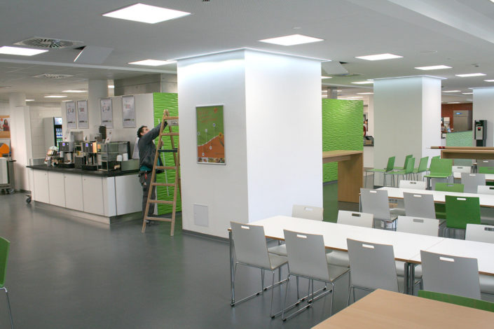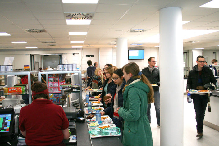 Aber nicht nur Pizza und Pasta sind Teil des rundum erneuerten Angebots. Ebenso gibt es nun vegetarische und vegane Gerichte sowie die Menülinie „MensaVital“ für Ernährungsbewusste. Neu sind auch die Grill– und Wokstation, die Bar mit regionalen Salaten der Saison und die Dessertbar mit fair gehandeltem Obst.