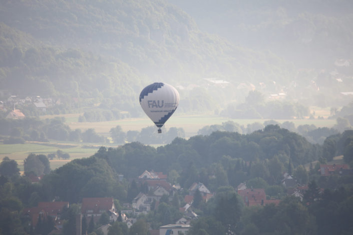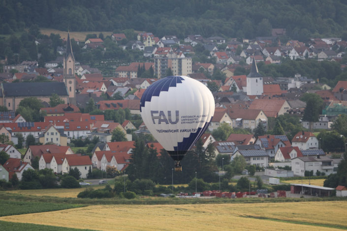 Zu ihrem fünfzigsten Geburtstag hat die Technische Fakultät der FAU einen Heißluftballon gesponsert bekommen. Begleitet wurde der FAU-Ballon auf seiner Tauffahrt von einigen Ballonen des Frankenballon e.V.