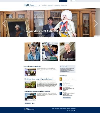 Die FAU-Webseite hat zuletzt im Jahr 2014 ihr Aussehen geändert. Fünf Jahre in denen viel passiert ist im Netz, aber auch an der FAU. Um dem Rechnung zu tragen, wurde auf Wunsch der Universitätsleitung die Hauptnavigation von www.fau.de an die vier strategischen Prioritäten „People“, „Education“, „Research“ und „Outreach“ angepasst und der Startseite ein frischeres Auftreten spendiert.