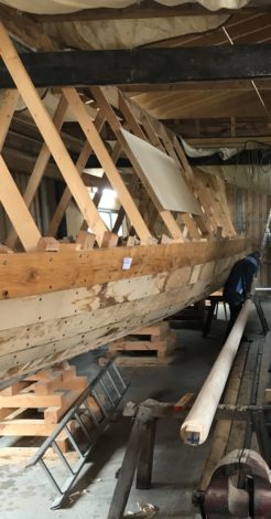 „Nun fehlen die Lücken in der Kimm“, berichtet Boris Dreyer, „die wir aber bis Mitte März schließen werden. Wenn der Rumpf dann geschlossen ist, können wir mit dem Innenausbau beginnen.“