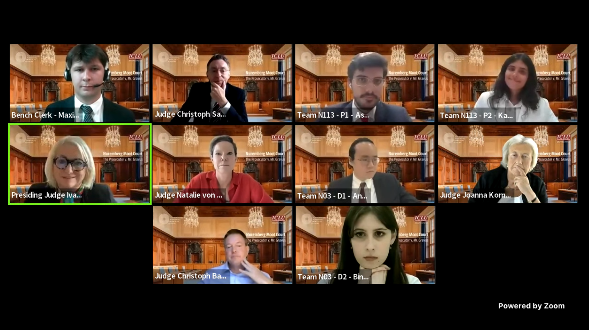 Statt im historischen Schwurgerichtssaal 600 des Nürnberger Justizpalasts, dem Geburtsort des modernen Völkerstrafrechts, begegneten sich die Finalistinnen und Finalisten des Nuremberg Moot Court 2022 in diesem Jahr virtuell. Wie bereits im Vorjahr fand der internationale Gerichtswettbewerb, der von der Internationalen Akademie Nürnberger Prinzipien und der Forschungsstelle Völkerstrafrecht (ICLU) der FAU ausgerichtet wird, für Studierende pandemiebedingt online statt. Die Teilnehmerinnen und Teilnehmer vertieften ihre praktischen Kompetenzen, indem sie in einem fiktiven völkerstrafrechtlichen Fall gegeneinander antraten und in wechselnden Rollen von Anklage und Verteidigung ihre Argumente darlegten. Im diesjährigen Wettbewerb konnten sie sich in einem Fall zum Thema Völkermord beweisen.