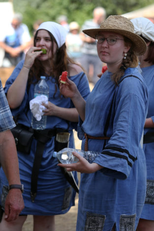 Unter sengender Sonne kämpfen sich die Boote voran. Die Luft flimmert in der Hitze und das Wasser der träge dahinfließenden Donau glitzert hin und wieder, wenn sich Sonnenstrahlen in den kleinen Bugwellen brechen, die die drei Boote vor sich herschieben. Schweiß steht auf der Stirn eines jeden Einzelnen an Bord. Die Männer und Frauen auf der Danuvina alacris und der F.A.N. müssen doppelt hart arbeiten, da die beiden Erlanger Boote nicht vollbesetzt sind. Schlag um Schlag tauchen die Riemen wie aufeinander abgestimmt in das blaue Wasser, treiben die Flussboote vorwärts. Unterwegs können die Besatzungen am Ufer immer wieder Männer in römischen Rüstungen auf Pferden und Frauen in Tuniken erkennen, die sie vom Ufer aus grüßen. Die Gruppe führt auch einen Pferdewagen mit sich. Ein römisches Geschütz, bewacht von Soldaten, ist zudem bedrohlich auf den Fluss und die Boote gerichtet.