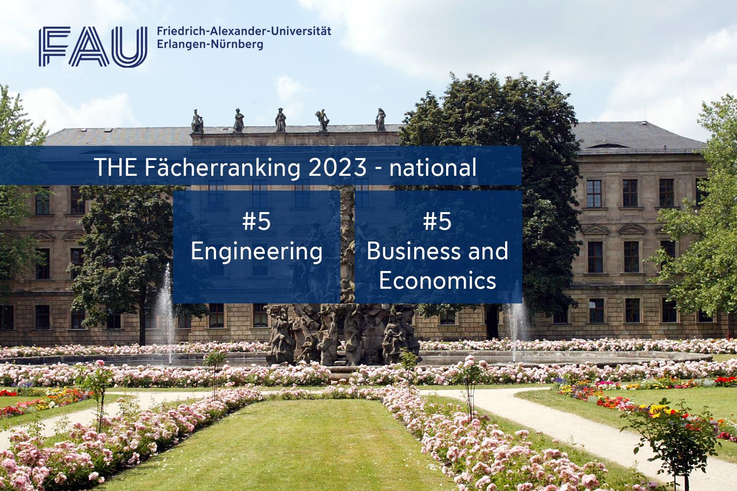 Die FAU ist erneut erfolgreich im THE Fächerranking: In diesem Jahr ist sie zum ersten Mal mit allen 11 untersuchten Fächern im Ranking vertreten. Die beste internationale Platzierung hält Engineering auf Rang 102; national liegt das Fach auf Platz 5 – genauso wie Business and Economics.