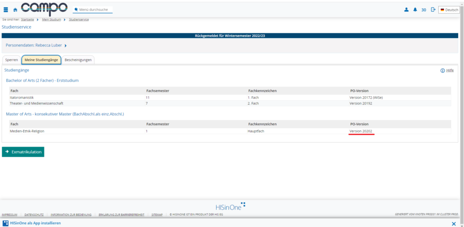 Die Lehrveranstaltungen in campo befinden sich unter dem Reiter „Studienangebot > Vorlesungsverzeichnis anzeigen“. Hier werden alle Studiengänge der FAU unter den verschiedenen Fakultäten angezeigt.- Nach dem Auswählen des korrekten Studiengangs, muss die korrekte Prüfungsordnung (PO) ausgesucht werden. Diese ist ganz einfach unter dem Reiter „Studienservice > Meine Studiengänge“ hinter dem jeweiligen Fach zu finden.