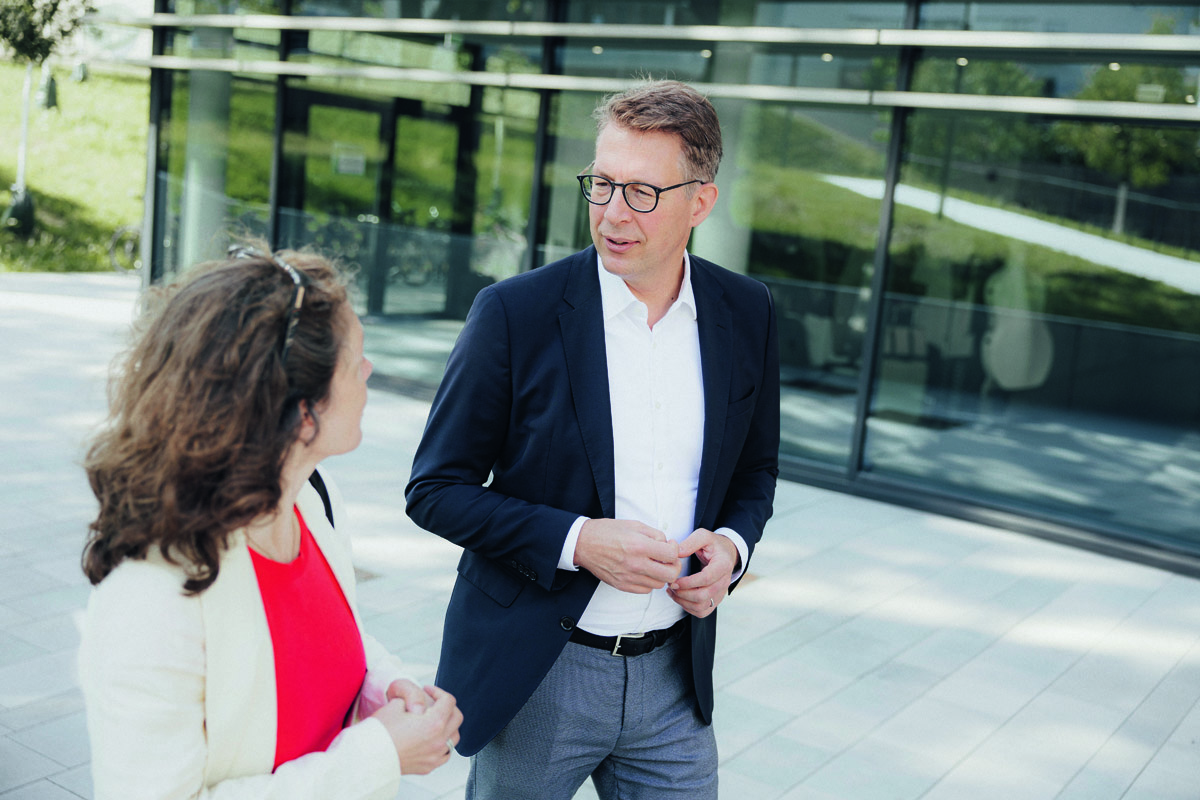 Wissenschaftsminister Markus Blume und Sprachforscherin Michaela Mahlberg über die Hightech Agenda Bayern, digitale Technologien und die Rolle sozialer Medien.