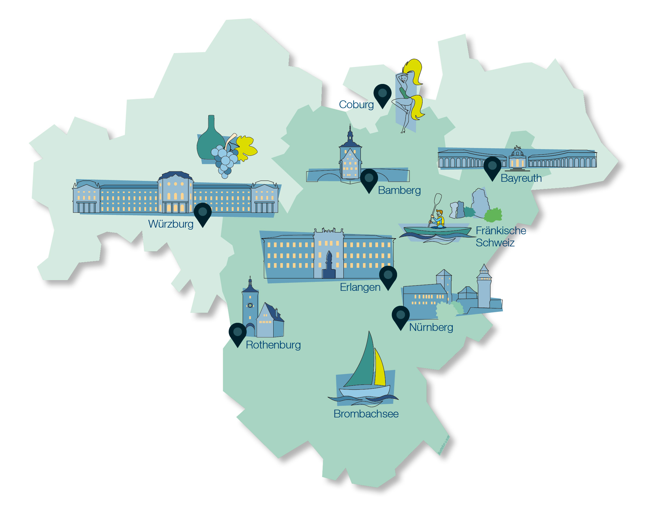 Mit einem Studium an der FAU sind Studierende mitten in Franken gelandet. Für einige direkt um die Ecke, für andere ein weiter Weg von ihrer Heimat. Damit sich alle Neuankömmlinge gleich wie zu Hause fühlen, haben wir ein paar Tipps für die schönsten Ausflugsziele in der Umgebung gesammelt.