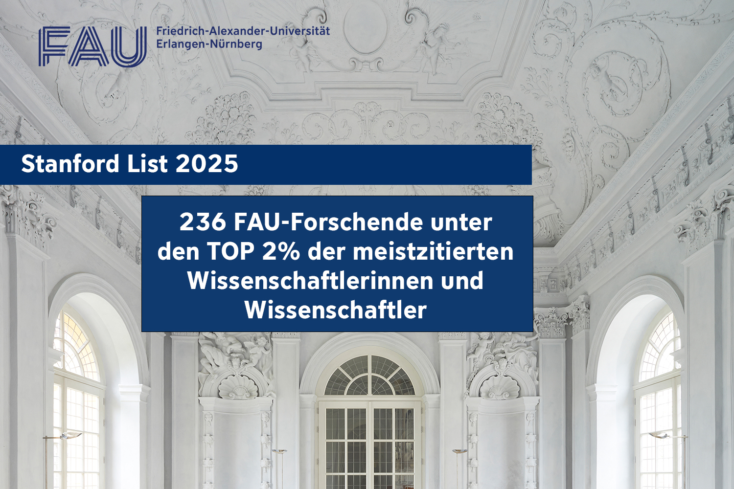 236 Wissenschaftlerinnen und Wissenschaftler der Friedrich-Alexander-Universität Erlangen-Nürnberg (FAU) gehören laut Stanford List 2025 zu den Top zwei Prozent der meistzitierten Forschenden weltweit. Acht FAU-Forschende erreichen innerhalb ihres Wissenschaftsfelds einen Rang unter den Top 50. Das Ranking berücksichtigt für die diesjährige Veröffentlichung insgesamt 236.313 Forschende. Dabei kommen 10.665 aus Deutschland.